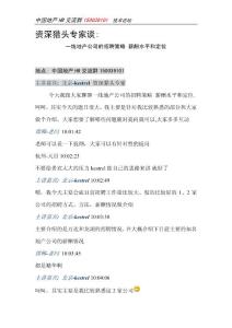资深猎头专家谈:一线地产公司的招聘策略薪酬水平和定位地点: 中国地产HR交流群150039101主讲嘉宾: 北京-kestrel资深猎头专家今天我跟大家聊聊一线地产公司的招聘策略 薪酬水平和定位.呵呵