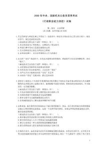 2000年中央、国家机关公务员录用考试 《行政职业能力测验》试卷 第二部分 言语理解 (共20 题,参考时限20 分钟) 1.真正的辩论与辩论比赛之不同在于,在前者中,辩论双方均站在自己真实的立场上,