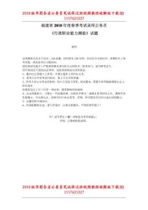 本文档为2010福建春季公务员考试行测真题及参考答案,主要反映了公务员考试中的试题结构以及试题难度,让大家通过本套试题能够清楚的认识到考试流程以及检测出自己的不足,使自己更好的准备公务员考试。