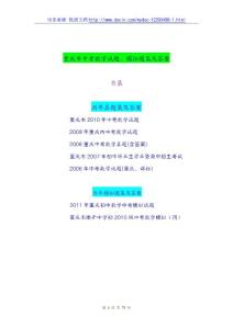 重庆市中考数学试题、模拟题集及答案目录历年真题集及答案重庆市2010年中考数学试题2009年重庆市中考数学试题2008重庆中考数学真题(含答案)重庆市2007年初中毕业生学业暨高中招生考试2006年中