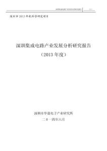 深圳集成电路产业发展分析研究报告2013 深圳市2013 年软科学研究项目 深圳集成电路产业发展分析研究报告 (2013 年度) 深圳市华强电子产业研究所 一四年六月深圳集成电路产业发展分析研究报告