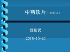 GMP--省局药化生产监管处李亚武2015.10 武汉• 中药饮片定义及其关联术语• 中药饮片附录起草情况• 饮片认证检查发现主要问题• 重点问题讨论结果• 中药饮片附录条款解读• 中药饮片是中药材经