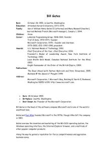 BillGates Born: October 28, 1955, Seattle,Washington. Education: Attended Harvard University, 1973–1