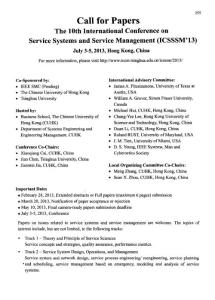 apers feren ce ServiceSystems ServiceManagement (IC SSSM ’13) moreinformation,please isithttp:llw ww
