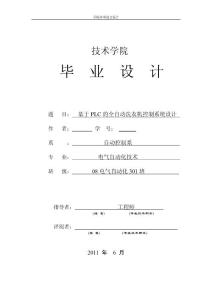学院毕业论文设计技术学院 基于PLC的全自动洗衣机控制系统设计 08电气自动化301 指导者:工程师 (专业技术职务)评阅者: (专业技术职务)2011 目录摘要…………………………………………………
