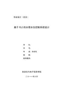 毕业设计(论文)基于PLC 的水塔水位控制系统设计 指导教师:自动化与电子信息学院 一一年六月基于PLC 的水塔水位控制系统设计 在工农业生产过程中,经常需要对水位进行测量和控制。水位控制在日常生活中