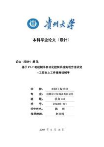 机械工程学院机械设计制造及其自动化 机自047 0403011701 18日贵州大学本科毕业论文(设计) 随着可编程控制器应用技术的不断发展,PLC的应用范围日益扩大,使得当今工程技术人员在设计电气控
