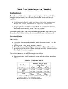 WorkZone Safety Inspection Checklist Basic Requirements workzone must navigatethrough safemanner dri
