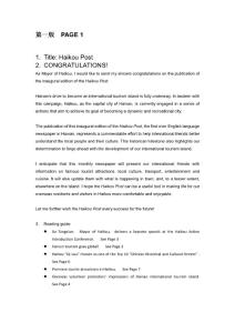 1.Title: Haikou Post 2. CONGRATULATIONS! wouldlike sendmy sincere congratulations inauguraledition H