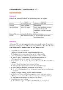 Congratulations(祝贺信) Key ExercisesPractice followingchart informationgiven samples.Sample Occasionou