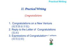 PracticalWriting1. Congratulations NewVenture (祝贺新业开张)2. Reply Congratulations(复函)3.Expressions Cong