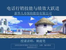 电话行销技能与绩效大跃进电话行销技能与绩效大跃进 新华人寿保险股份有限公司 新华人寿保险股份有限公司 为尊重讲师智慧财产权请勿录音、录像、翻印教材 谢谢您的合作! 授课讲师:姚能笔 授课讲师:姚能笔