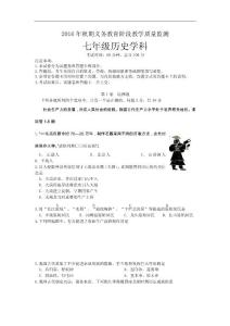 2016年秋期义务教育阶段教学质量监测 七年级历史学科 考试时间:60 分钟,总分100 注意事项:1.本试卷分为试题卷和答题卡两部分。 2.答题前,考生先将自己的姓名、学校、班级用碳素笔或钢笔填写清