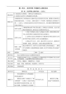 第一单元史前时期:中国境内人类的活动 中国早期人类的代表---北京人课标要求 1.知道北京人的特征,了解北京人发现的意义。 2.知道化石是研究人类起源的主要证据。 教材分析 本课简要介绍了祖国境内旧
